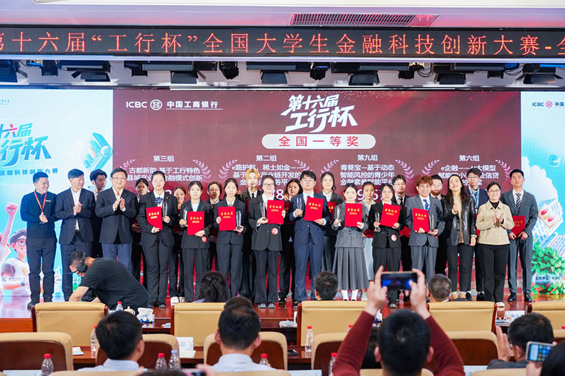 【特訊】由中國工商銀行主辦的“第16屆‘工行杯’全國大學生金融科技創新大賽”於12月6日假對外經濟貿易大學國際交流大廈禮堂舉辦。由澳門城市大學的翁傳振、李思墨、鄧淼鑫選手組成的澳門賽區代表隊展示作品《“青葵寶”——基於動態智能風控的青少年金融素養賦能平臺》在決賽舞臺上大放異彩,獲得現場評委一致好評,勇奪“工行杯”全國大學生金融科技創新大賽一等獎。