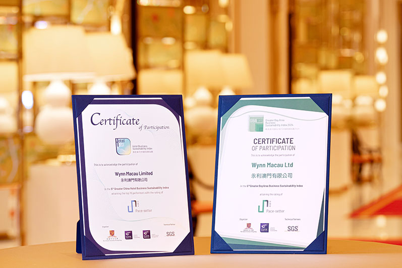 永利已連續四年分別被評為「大中華區酒店可持續發展指數」前十企業及「大灣區企業可持續發展指數」前二十名企業。今年,永利的指數得分較其他參評企業的平均得分分別高出26%和19%;而「大中華區酒店可持續發展指數」得分與首年相比更躍升近40%,彰顯永利在持續提升營運效率及深化可持續發展實踐的堅定承諾,樹立了大中華區酒店業界和大灣區企業的標桿典範。