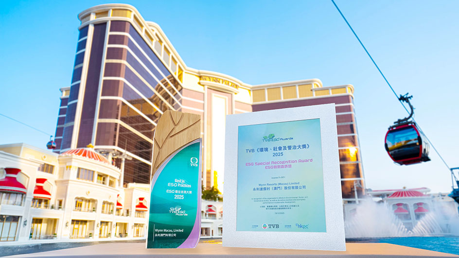 【特訊】永利早前在香港舉行的TVB「環境、社會及管治大獎2025」頒獎典禮中,榮獲「ESG最佳表現大獎」及「ESG特別嘉許獎」,其中永利更是唯一獲「ESG最佳表現大獎」的澳門企業,彰顯了業界對永利推動可持續發展工作的認可。