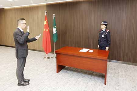 【特訊】根據保安司司長批示,自2026年1月21日起,委任蔡永興為澳門保安部隊事務局行政管理廳廳長。就職儀式於2026年1月21日在澳門保安部隊事務局舉行,由局長劉運嫦警務總監主持,並在副局長鄺逸富副消防總監、陳曉副警務總監及部門主管的見證下,蔡永興廳長宣誓就任。