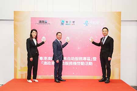 【特訊】爲促進灣區政務高質量發展,澳門特區政府與香港特區政府再度聯動合作,推進粵港澳高頻政務服務跨境通辦,在香港數字政策辦公室的大力協助下,自即日起,於香港“粵港澳跨境政務自助服務專區”設置“澳政易”自助服務機。啓用活動今天在香港庫務大樓舉行,由香港數字政策辦公室黃志光專員、廣東省政務服務和數據管理局顧君冬總工程師及澳門身份證明局陳婉麗副局長擔任主禮嘉賓。