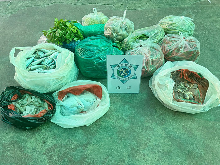 海關持續進行「冬防行動二零二六」。本月二至四日,海關聯同市政署到關閘口岸一帶,進行聯合巡查行動,截獲兩宗不法販運個案,合共檢獲未經檢疫海鮮類、肉類、蔬菜類及根莖類食材逾六十二公斤。