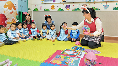 為了更好地響應特區政府提倡的「長幼共融」號召,其中聖約翰托兒所(新口岸)和護理安老院更共同舉辦了「長幼樂無限-趣味復活節」親子活動,在教師帶領下,幼兒及家長與長者們一起進行「運送復活蛋」、「復活蛋滾滾樂」等合作遊戲,遊戲過後,大家一起製作彩虹兔子, 並手持彩虹兔子一起拍照留念,場面熱鬧非凡。