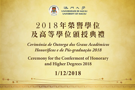 【特訊】澳門大學榮譽學位及高等學位頒授典禮將於12月1日(星期六)下午4時在澳大大學會堂舉行,向沈祖堯、劉少榮和劉藝良頒授澳大榮譽博士學位;王安憶和阿龍.切哈諾沃的榮譽博士學位將另行頒授。此外,同場還會頒授博士及碩士學位。