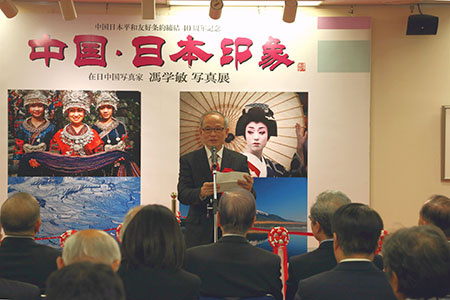 【中新社東京12月11日電】(記者 呂少威)“中國·日本印象”攝影展開幕式11日在東京中國文化中心舉行。中國駐日本大使程永華、日本前首相福田康夫等中日各界人士100餘人出席。