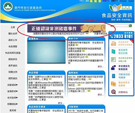 非洲豬瘟不是人畜共患病並不傳染人類,對人體健康和食品安全並不構成威脅,從目前研究顯示,豬隻是該病毒唯一的自然宿主。市政署一直在入口層面針對鮮活食品、動物源性食品設有檢驗檢疫監察制度,所有鮮活食品或動物源性食品進口本澳時,必須申報及接受強制性檢驗檢疫,提交由來源地官方發出之衛生證明文件以及相關衛生檢疫資料供審核。當中包括申明相關肉類及肉製品必須符合安全衛生要求,確保輸入之鮮活及動物源性食品不受疫病污染。故此,只要循正途購買食品,切勿購買來歷不明的豬肉,或私自攜帶肉類及其製品進出境,保持良好、正確的食品安全及衛生習慣,便無需過份擔心。
