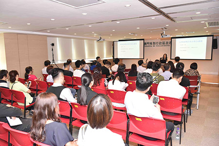 經濟局代表在講座上介紹商標註冊的重要性與申請手續須知,建議商戶如欲擁有商品、服務的商標權,應及早為商標註冊,有關的做法既可維護商戶自身權益,亦是全球重視知識產權國家或地區的發展趨勢。