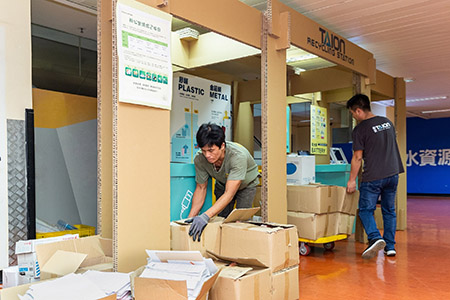 攤位上提供了可回收物品的資訊,而攤位本身更以回收纸板建造,可於下次活動中再次使用;現場亦安排了回收公司的人員解答相關回收問題。團隊成員可以把各式各樣的物品帶到攤位回收,可回收類別包括:紙類、塑膠、金屬、電池、衣物、電子用品、鋁罐、玩具、碳粉盒及墨盒、小型電器及燈泡等物品。