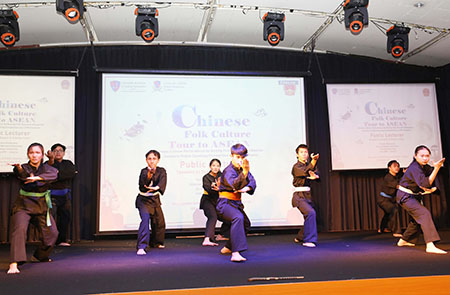 倫敦公共關係學院學生也現場表演了印尼傳統武術本扎(Pancasila),中國民俗文化代表團一行亦被深深吸引和感染。