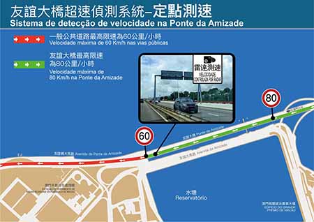 【特訊】為加強保障道路使用者的安全,交通事務局與治安警察局於6月起試行友誼大橋近友誼大馬路引橋入口與友誼大橋近氹仔端出口路段(澳門往氹仔方向)之區間測速監控,以採集數據及讓駕駛者提前適應有關裝置;隨著試行情況理想,上述之區間測速監控連同位於友誼大橋近水塘路段(氹仔往澳門方向)新增之定點測速系統,將於7月1日(周一)起投入運作;屆時友誼大橋及連接橋樑之道路合共設有19套超速偵測監控設備。