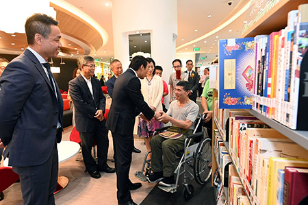 開幕儀式後,一眾嘉賓由文化局公共圖書館管理廳代廳長羅子強帶領參觀,瞭解圖書館的空間配置及服務設備。文化局一直致力推動城市閱讀的風氣,積極於各區設置圖書館,以便居民使用社區的閱讀設施。位於路環蝴蝶谷大馬路石排灣社區綜合大樓6樓的石排灣圖書館,擁有寬闊山景景觀及中庭內園,環境優美雅緻。全館總面積為2,074平方米,閱覽座位超過300個,是區內集共享學習、休閒和社交功能於一身的綜合型公共圖書館。現有館藏量圖書約為40,000冊及3,500件影音資料,預計最高館藏量可達約75,000冊 (件)。在空間設計上,該館著重空間環境的塑造,除個人閱覽空間外,還設置了多功能室、團體討論室、親子互動區等人與人之間進行互動的區域,讓圖書館成為區內的重要公共場所。除一般圖書館功能及區域包括報刊閱覽區、閱覽區、自修區、兒童閱覽區及影音資料區外,館內亦設置育嬰室、自助設備服務站等,提供優質且便民的閱讀體驗與空間。