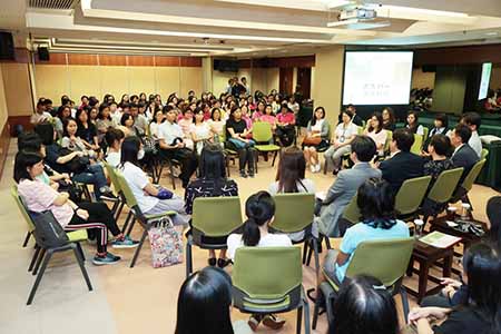 老柏生與教學人員在輕鬆的氣氛中展開交流。老柏生首先引用《華嚴經》說明不忘初心的定義,後用多個小故事體現初心的重要性,以及教師以生命影響生命的教育過程。老柏生指出教師應經常淨化自己的內心,才能堅定我們的追求,抵達自己的初衷;另外,教師對事應不失偏頗,保持中立,理性分析,並以公平的態度對待,以身作則,樹立良好的榜樣,為學生帶來正面的影響。隨後多位教學人員分享他們的“育人"和“身教"的心得和親身經歷,以及從中得到的啟發和感受。