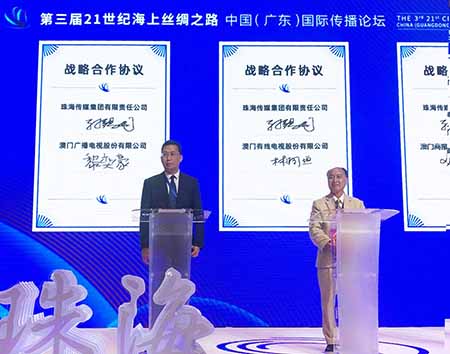 澳廣視與珠海傳媒集團長期以來保持著良好溝通合作關係,澳珠兩地在粵港澳大灣區建設中迎來更加廣闊的舞台,為充分發揮兩地主流媒體的使命及作用,澳門廣播電視股份有限公司與珠海傳媒集團簽訂戰略合作協議,內容包括新聞交換、節目合作、新媒體融合及人員交流等。