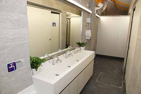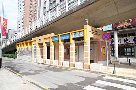 位於畢仕達大馬路的金蓮花廣場公廁,優化工程採用自然通風及採光設計,並盡量利用現有空間重新規劃公廁整體佈局,女廁廁格由原來三個增加至六個,以減少女士的輪候時間。公廁的設施設備亦全面優化,除採用更優質的耐磨材料外,皂液、水龍頭、便器及衛生紙等均使用感應式設備,市民無須接觸開關,使用時更清潔衛生,而針對氣味問題,公廁內已裝設消毒淨味機,有效改善空氣環境。