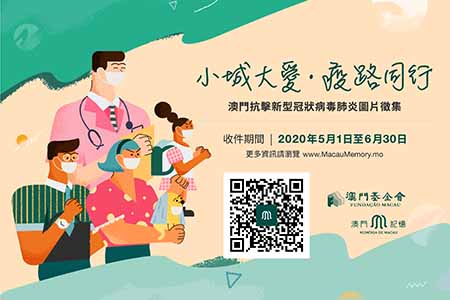【特訊】新型冠狀病毒肺炎肆虐,澳門各界全力配合特區政府,以積極的心態面對“疫”境,充分體現了澳門市民守望相助、共克難關的精神與氣魄。澳門基金會的“澳門記憶”文史網(www.MacauMemory.mo)特開展“小城大愛.疫路同行——澳門抗擊新型冠狀病毒肺炎圖片徵集”,以真實記錄全城抗疫的珍貴瞬間,共同構建澳門市民眾志成城、齊心抗疫的記憶。徵集活動於網上進行,收件期由本年5月1日至6月30日,並設有多個獎項。