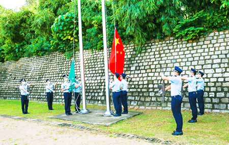 【特訊】七月三日,澳門保安部隊高等學校舉行校慶系列活動,昨日早上8時正,在校內舉行升國旗及區旗儀式;下午三時正,舉行2019/2020年度警官/消防官培訓課程結業典禮暨員工嘉獎狀及行為功績徽章頒發儀式。