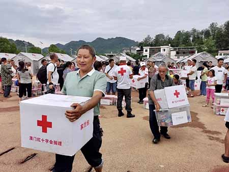 7月8日在貴州省銅仁市松桃苗族自治縣甘龍鎮石板村發生山體滑坡,造成石板村田堡、陳家、石家3個村民組共19戶房屋被淹埋和60戶房屋受損,澳門紅十字會提供的救災家庭包亦透過貴州省紅十字會急運送往松桃受災地區,送到災民手中,協助他們渡過難關。7月初,連續強降雨造成江西上饒、景德鎮、九江等6個設區市36個縣共60.6萬餘人受災,需要緊急轉移和安置群眾。家庭箱中包含乾糧、毛巾、香皂、紙巾、拖鞋、餐具等日常必須品。澳門紅十字會持續密切關注各地災情,隨時再作出應急救援,協助當地紅十字會救災。