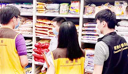 消委會及經濟局昨日(15)日巡查多間大型超市,發現貨品供應與平日無異。根據供應商提供資料,本澳糧副食品存量充足,以大米、麵粉及奶粉為例,現存量分別逾1600噸、400噸及37萬罐,其中大米存量足夠本澳正常食用25日。