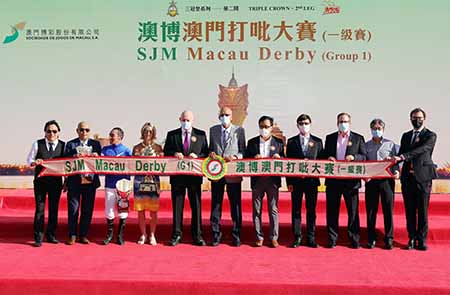【特訊】由澳門博彩股份有限公司(「澳博」)冠名贊助之「澳博澳門打吡大賽」,昨天下午在澳門賽馬會舉行。經過一番精彩競逐,最後由「聖靈大亨」勇奪「澳博澳門打吡大賽」冠軍。澳博管理層出席頒獎儀式,與得獎馬主、練馬師和騎師分享喜悅。