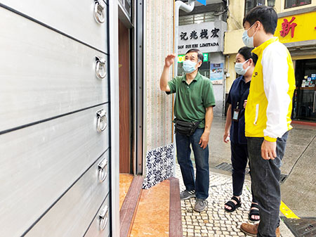 【特訊】經濟局聯同生產力暨科技轉移中心人員昨日(19)日下午到內港以及十月初五街一帶走訪,瞭解已安裝防洪門或升降台的商戶的情況以及防浸設備的功效。