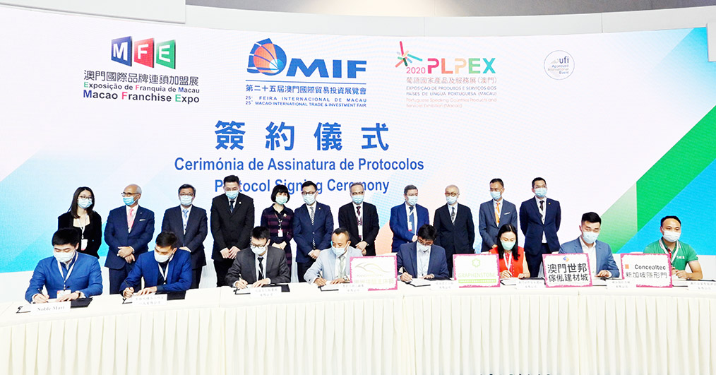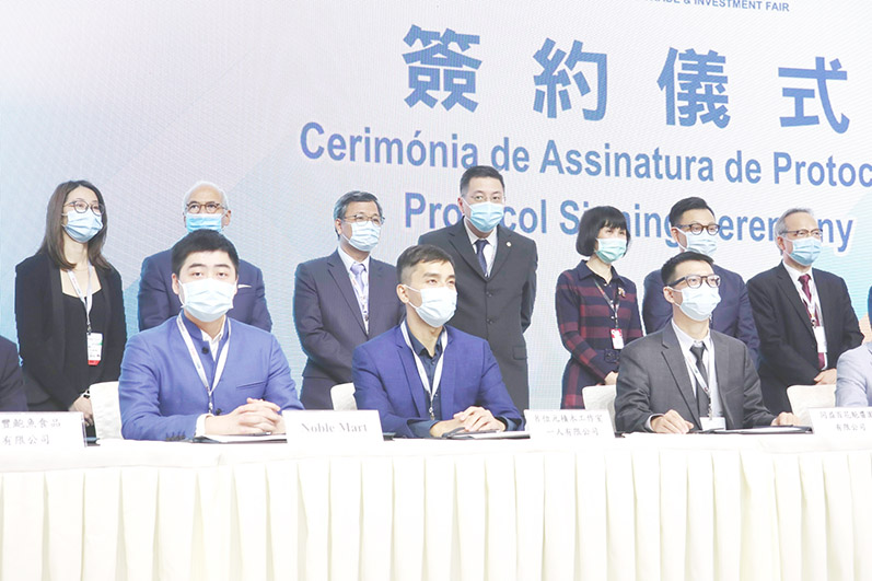 在三項大型會展活動上,多家本地品牌成功配對,並進行了簽署儀式,其中,本地大型連鎖超市Noble Mart(樂家福)與百花魁、8位元積木工作室、資豐鮑魚、澳門製皂等四家企業簽署《澳門品牌進駐樂家福銷售合作協議》。