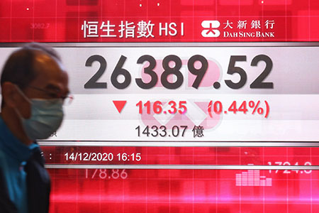 【香港中通社12月14日電】(記者 王姝)港股上周挫330點連跌兩星期後,14日再挫逾百點收市。恆生指數收報26389點,跌116點,大市全日成交1433.07億元(港元,下同)。