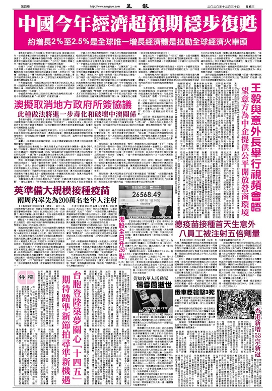 當前報章2020年12月30日