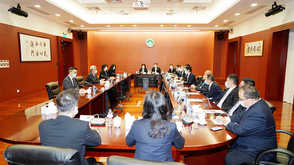 街坊總會會長吳小麗、理事長陳家良及社團新屆理監事代表一行,於2月5日下午,到保安司司長辦公室拜訪黃少澤司長。座談會上,吳小麗向司長介紹街坊總會新班底成員,介紹會務及未來工作;陳家良介紹了街坊總會近日在保安範疇上關注的議題,如冬防、預防燃氣爐具氣體洩漏等,並與司長進行了深入討論。黃少澤對當選的街坊總會新屆領導班子表示祝賀,亦感謝街坊總會長期以來對澳門保安部隊及部門開展的工作所給予的支援和配合。