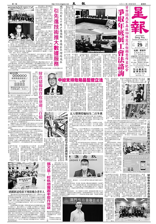 【特訊】新型冠狀病毒感染應變協調中心表示,隨著首批10萬劑國藥新型冠狀病毒滅活疫苗抵澳,特區政府於2月9日正式啟動新冠病毒疫苗接種計劃,並已於2月22日起擴展至全澳居民免費接種。而由德國BioNtech生產的mRNA疫苗亦將於近日由德國經香港運抵澳門,預計下週起可開始為市民接種。截至2月24日下午9時,已有25,462人次預約接種新冠病毒疫苗,其中9,284人已完成接種,反應符合預期。