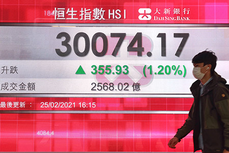 【香港中通社2月25日電】(記者 李冰琪)香港25日恒生指數收市報30074點,升355點,新經濟股回升。
