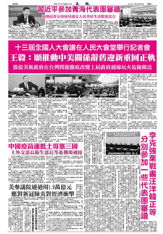 十三屆全國人大會議在人民大會堂舉行記者會 王毅:願推動中美關係辭舊迎新重回正軌 敦促美新政府在台灣問題徹底改變上屆政府越線玩火危險做法
