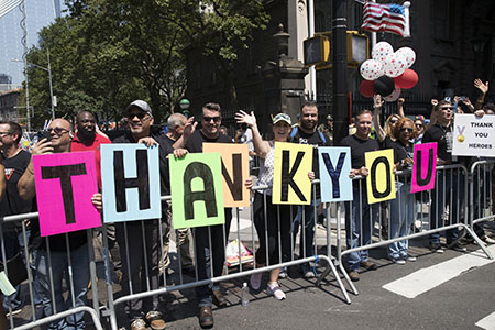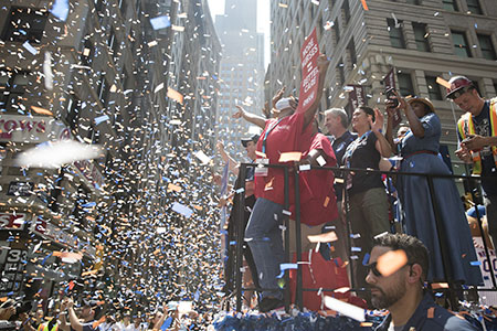 紐約市市長白思豪說,我們要感謝的人很多,他們在紐約的最艱難時刻創造了歷史,是他們讓紐約逐步恢復正常,一線工作者值得享有這樣的遊行待遇。