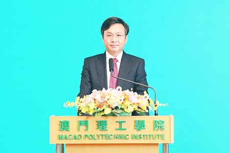 嚴肇基致辭時表示,今年是澳理工建院四十周年,建立了本碩博全方位人才培育體系,學位課程獲得國際權威機構的課程評審或專業認證,辦學水平獲得國家及國際認可。今年學院與北京大學合作組建“北京大學醫學部—澳門理工學院護理書院”,為粵港澳大灣區培養更多護理人才。在科研發展上,學院不斷提高科研投入,與世界知名大學以及特區政府部門合辦科研和檢測中心,在多個領域成果顯著。正是在人才培養、科學研究等方面的卓越表現,在可持續發展方面,今年學院榮登2021年英國泰晤士高等教育世界大學影響力排行榜,名列301至400名區間。