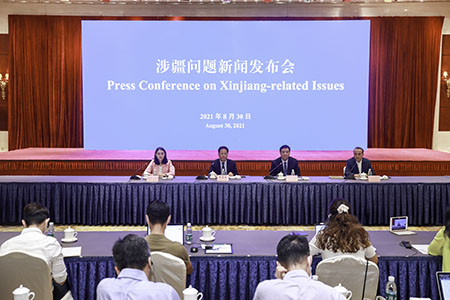 當日,新疆維吾爾自治區人民政府在北京舉辦涉疆問題新聞發佈會。伊力江·阿那依提應詢指出,中國是阿富汗最大鄰國,中國新疆與阿富汗接壤,“東伊運”等恐怖勢力一度在阿富汗聚集,對中國新疆的安全穩定構成直接威脅。