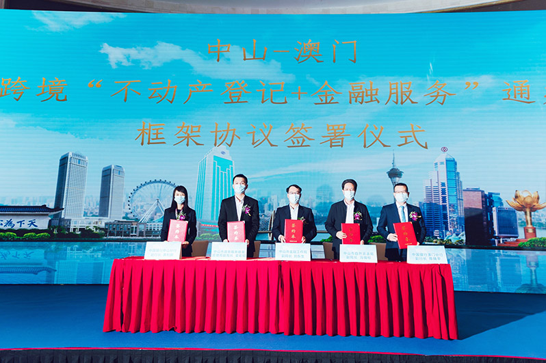 【特訊】為貫徹《粵港澳大灣區發展規劃綱要》精神,深化落實「放管服」改革要求,進一步促進澳門居民融入大灣區發展大局,便利澳門居民跨境抵押業務辦理,提升客戶服務體驗,中國銀行澳門分行聯動中山分行與中山市金融工作局、中山市自然資源局、中山市政務服務數據管理局等機構就線上抵押登記的操作性、便捷性及安全性問題進行多次研究商討後,成功作爲澳門首間與中山市達成跨境「不動產登記+金融服務」合作的境外機構,並開設了「中山市不動產登記便民服務點」。11月12日在中山聯合舉辦「中山-澳門跨境‘不動產登記+金融服務’合作協議簽署及啟動儀式」。