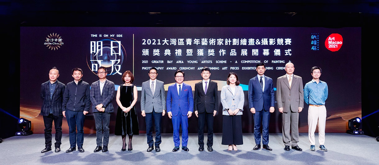 【特訊】由澳門倫敦人贊助的「明日可及——2021大灣區青年藝術家計劃」繪畫及攝影競賽頒獎典禮暨獲獎作品展開幕儀式於周三在澳門倫敦人舉行。金沙中國有限公司總裁王英偉、「明日可及——2021大灣區青年藝術家計劃」評審委員會、獲獎藝術家及大灣區藝術界知名人士蒞臨參與,共襄盛會。