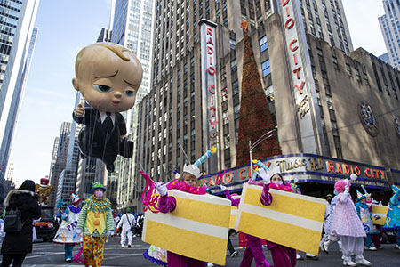 今年,這項活動全面回歸,觀眾可在傳統的2.5英里(約4公里)長的遊行路線附近,欣賞由15個巨型氣球、28輛花車以及行進表演組成的節目。