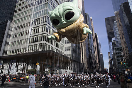 25日,多個新款造型的巨型氣球出現在感恩節大遊行中,包括尤達寶寶、小科學家阿達、新版的皮卡丘和麥當勞叔叔等。