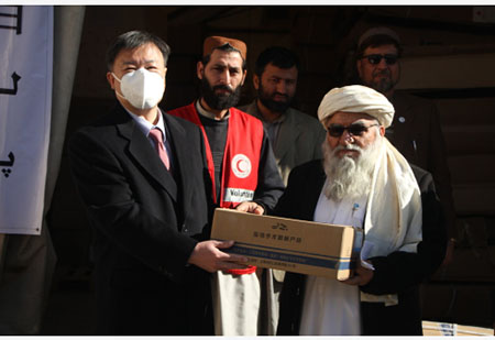 【香港中通社12月22日電】中國紅十字會援助阿富汗紅新月會物資交接儀式21日在阿富汗紅新月會總部舉行。中國駐阿富汗大使王愚和阿紅新月會主席哈里斯出席儀式並簽署物資交接證書。