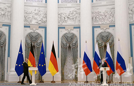 據克里姆林宮網站消息,普京當天在莫斯科與到訪的德國總理朔爾茨舉行會晤,討論雙邊關係和國際熱點問題,包括向俄提供具有法律約束力的長期安全保障和烏克蘭局勢等。