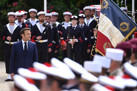 馬克龍隨後檢閱共和國衛隊。整個儀式樸素、低調,全長祗有一小時。法國總理卡斯泰等現任政府高級官員,法國前總統薩科齊、奧朗德,前總理菲利普、瓦爾斯、拉法蘭,巴黎市長伊達爾戈、尼斯市長埃斯特羅西等政要以及醫護人員、運動員、學生等各界代表共450人出席儀式。