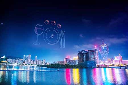無人機表演以不同的圖案照亮天際,首先呈現的是澳娛綜合對澳門美食文化傳承創新的重要里程。天巢法國餐廳及8餐廳均獲頒米芝蓮三星殊榮,使新葡京酒店成為澳門擁有最多米芝蓮三星餐廳的酒店。澳娛綜合亦是2022年至2024年《香港澳門米芝蓮指南》官方合作夥伴,攜手推廣澳門美食文化,共同促進澳門旅遊產業多元發展。