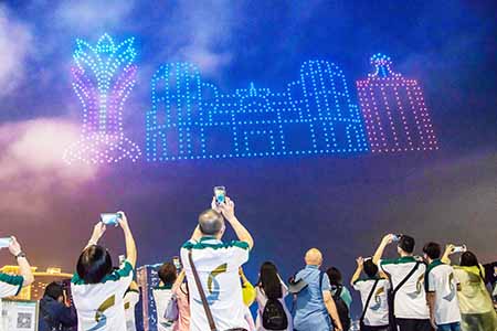 澳娛綜合植根澳門,為市民和旅客打造了體現城市風情的「必訪」地標。這次無人機表演盛會展示了澳娛綜合三座最具代表性的地標 — 葡京酒店、新葡京酒店,以及上葡京綜合度假村。上葡京作為澳門最新的綜合度假村,傳承「葡京品牌」在澳門旅遊休閒業的領先地位,展現澳門中西文化交融的特色,為澳門旅遊休閒業發展開啓了新篇章。