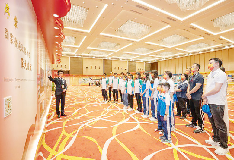 一眾「海關小領袖」及「守正之星」成員在導賞員的介紹及講解下,參觀「國家發展取得新的偉大成就」、「堅持總體國家安全觀,國家安全體系不斷完善」、「新時代國家安全成就突出,着力防範化解重大風險」、「強基固本,迎難而進,推動「一國兩制’穩步向前」、「努力進取,奮發有為,積極融入國家發展大局」以及「愛國愛澳,薪火相傳,齊心合力維護國家安全」六部分內容,期間觀看了國家安全教育短片及參與互動遊戲,令青少年對國家安全有更深刻的瞭解,進一步提升愛國愛澳意識。