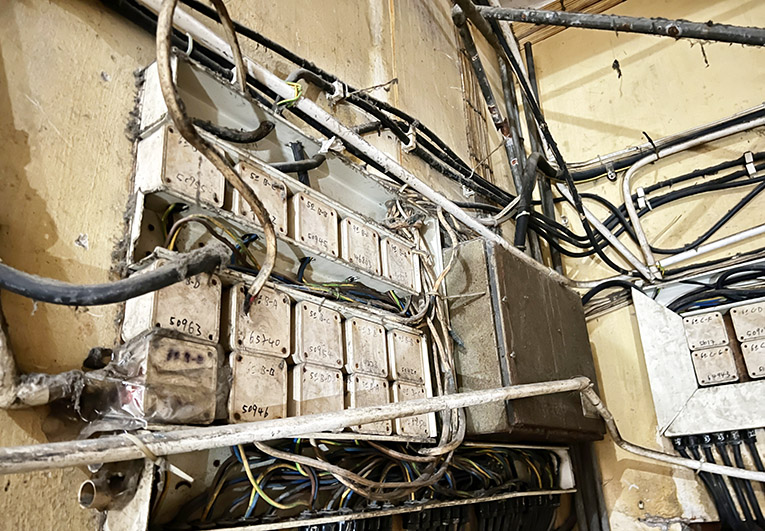 新美安大廈已經有50年樓齡,屬於三無樓宇(即沒有管理機關、居民組織及管理公司的大廈),長期缺乏維修和保養。經澳電工程師進行專業檢查和評估後,發現新美安大廈的公共電力裝置出現多個嚴重危及居民生命安全的隱患,必須儘快更新和升級,否則對住戶及途人均構成危險。當中大廈內的水管與電線雜亂交錯,接駁不當的電線隨處可見,而且水管亦出現漏水情況,流經至上升線分線箱及電錶板,容易導致短路,令居民出入時有觸電的風險。若繼續置之不理,將有機會發生火警,雜亂的電線亦大大阻礙日常保養和故障排查等工作。此外,新美安大廈的電錶欠缺電錶箱作保護,微型斷路器容易受外物撞擊或遭途人誤觸,影響住戶日常用電,老化損壞的電錶板無法有效固定電錶,導致電錶與電線接觸不良,同樣會增加短路起火風險。