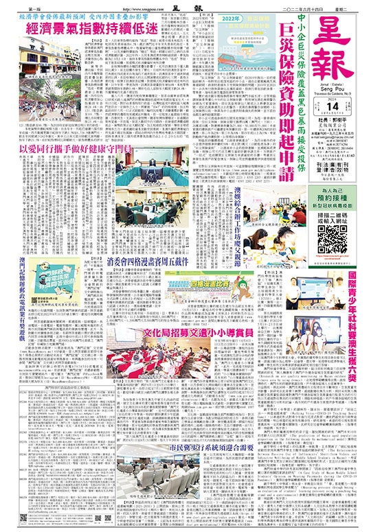 “第六屆澳門文化遺產小小導賞員培訓計劃”將於8月1日至8月15日期間,每天下午2時30分至5時30分進行(8月8日、13日及15日除外),合共36課時,以粵語授課,課程內容包括理論培訓、實地考察及導賞。完成課程及評分合格的學員將獲頒發結業證書,正式成為“澳門文化遺產小小導賞員”。此外,完成是次培訓計劃後,學員可接續參與下一階段的“小小導賞員實踐培訓”及未來的“小小導賞員成長計劃”,於澳門各世遺景點向公眾介紹和宣揚澳門的文化遺產,以及參與文化局組織的文遺普法及宣傳工作,並與本澳其他青少年團體進行交流,擴闊眼界和拓展文化視野。有興趣參加的澳門在讀學生可由即日起至7月1日透過文化局網頁“活動報名系統”(www.icm.gov.mo/eform/event)報名,名額為30名,倘報名人數多於錄取名額,將以電腦抽籤方式錄取。計劃詳情可瀏覽文化局網站www.icm.gov.mo,或於辦公時間致電6668 1097(龐先生)。