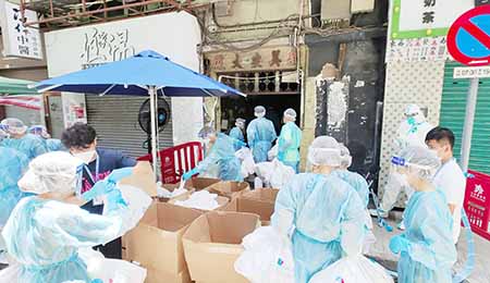 新美安大廈第二期由黃碼區升為紅碼區,維生支援小組正逐戶收集住戶資料並派發應急食物包,由於住戶眾多,為使各項工作順利開展,故新美安大廈第二期昨日(三十)日下午三時至五時的物資配送時段暫停服務。