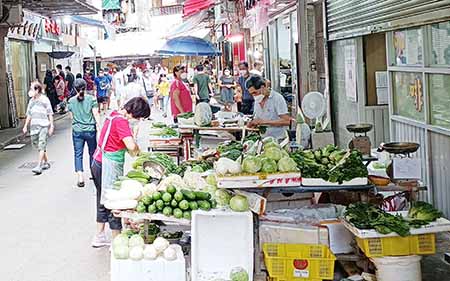 在黃色高溫提示生效,在酷熱天氣下,在紅街市、義字街和祐漢生果街一帶,大部分攤販均設置風扇散熱。各檔販都依法配戴KN95或以上標準口罩,有市政署人員手持揚聲器,提醒在場人士戴好口罩、保持距離。有檔販反映,早前有市政署人員告知他們,不可以在檔位喝水和進食,不能吸煙等,檔販指不會吸煙,但這樣炎熱天氣下,如何不喝水。有檔主稱,酷熱天氣下只能飲水和開風扇消暑,但同時憂慮脫下口罩擦汗會被檢控。