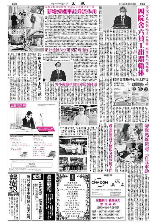 秉承萬豪國際集團「服務社區」的經營理念,集團旗下五間酒店 — 澳門JW萬豪酒店、澳門麗思卡爾頓酒店、澳門瑞吉酒店、澳門喜來登大酒店及即將開幕的澳門W酒店,超過126名員工自願參與協助四天的全民核酸檢測工作。他們於7月8日至11日分批前往兩輛流動核酸採樣車擔任義工,協助分流引導、維持秩序及資料登記等工作,為社區出一分力。