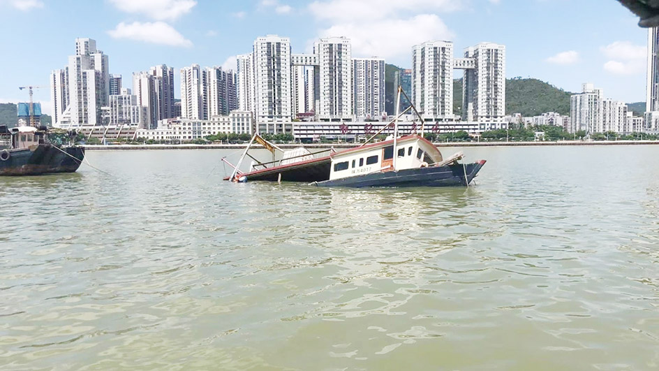 【特訊】內港錨地日前有漁船入水傾側,相關船東昨日(26日)進行漁船的起吊作業。海事及水務局在作業期間派船於現場戒備及提供協助,並跟進清理油污和掃瞄海床等善後工作。